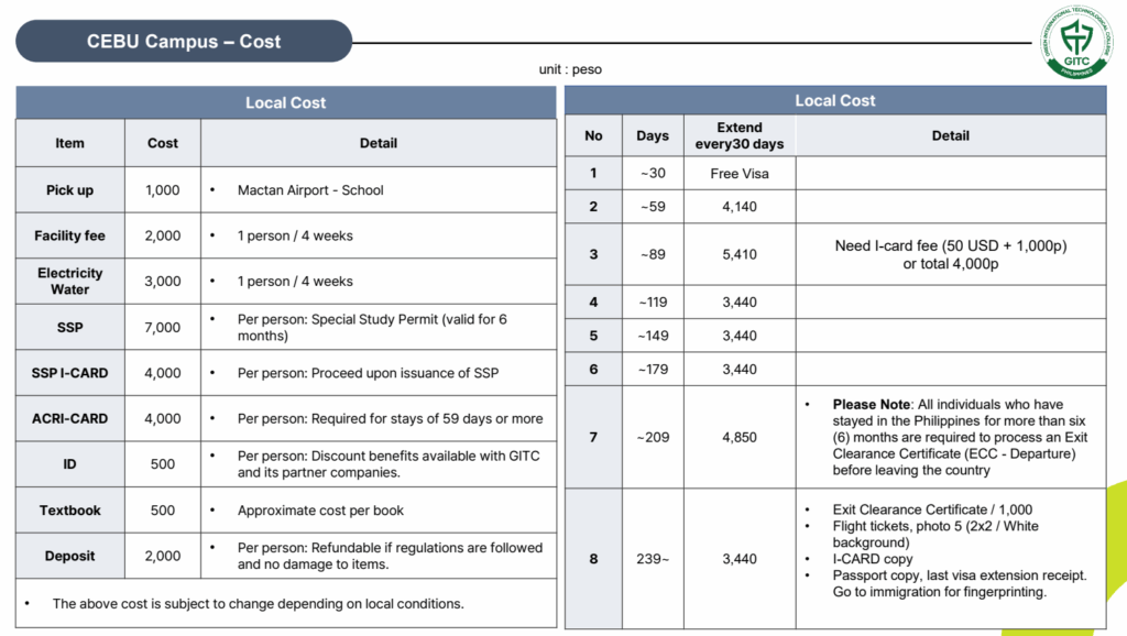 | 어학원 위치 | 필리핀 세부 | 홈페이지 | http://gitc.edu.ph |