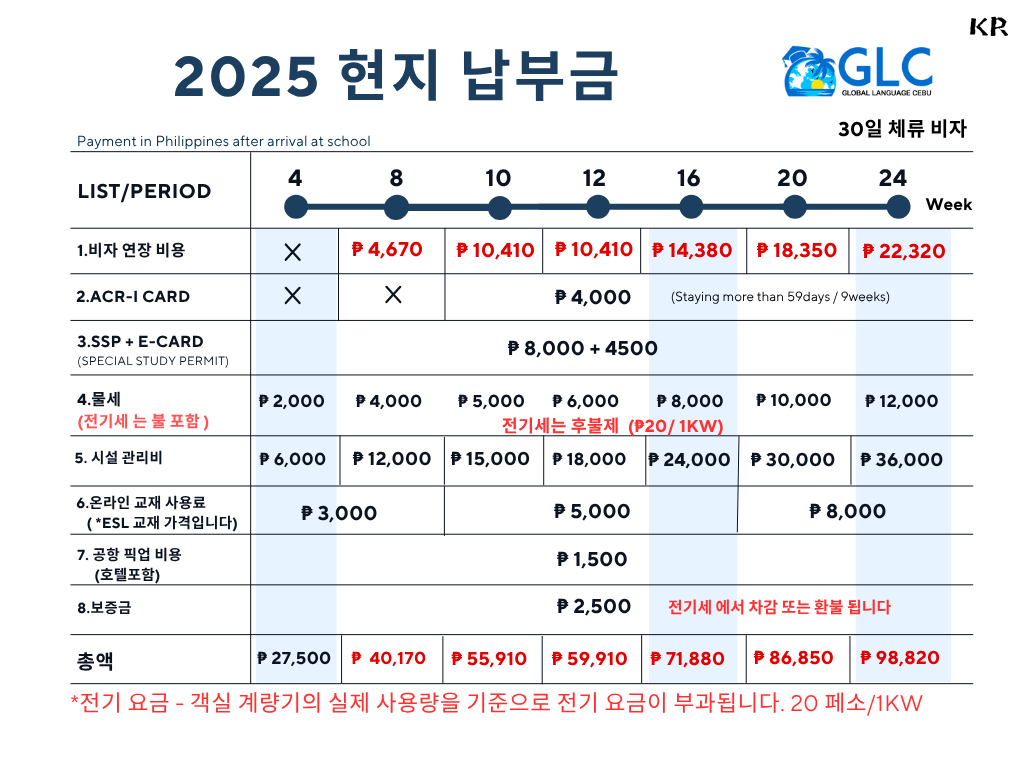 | 어학원 위치 | 필리핀 세부 | 홈페이지 | https://www.glcenglish.com |